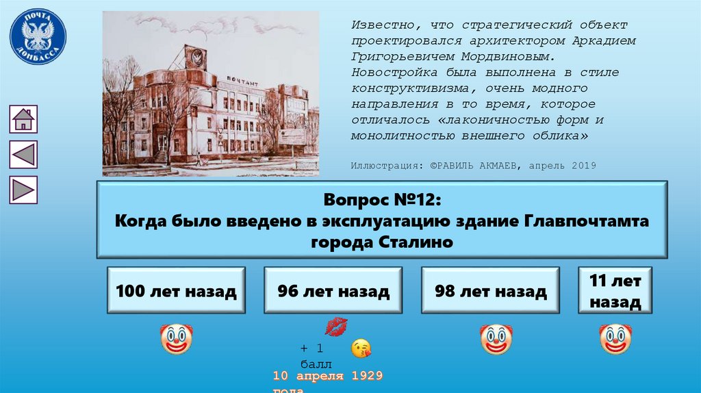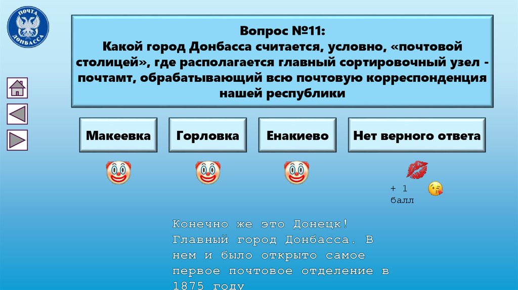 Вопрос №11:Какой город Донбасса считается, условно, «почтовой
