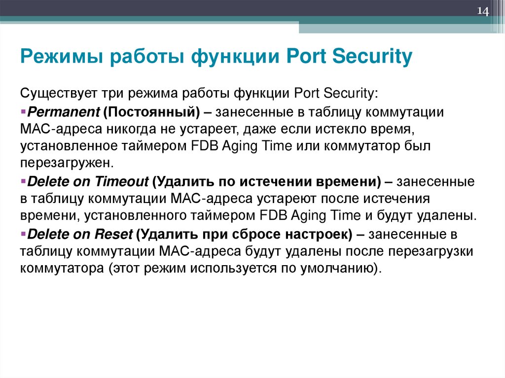 исключает порт из таблицы коммутации