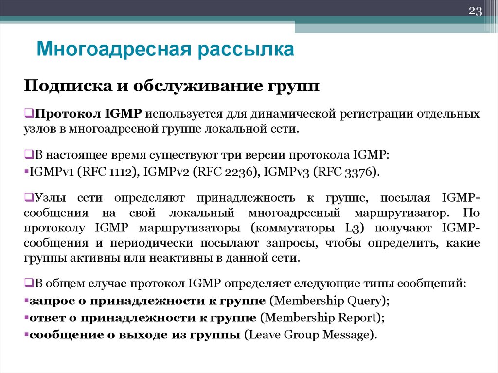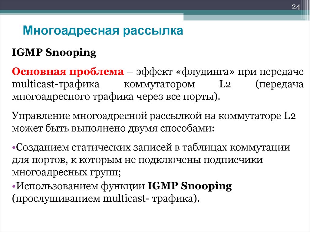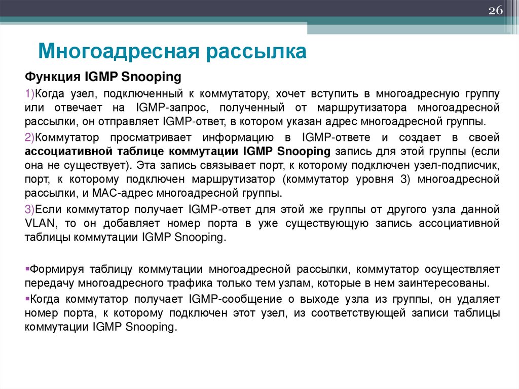 передачу многоадресного трафика только тем узлам, которые в нем заинтересованы.