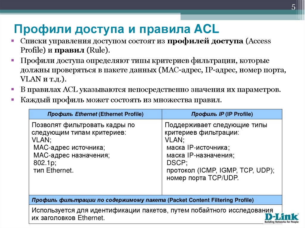 5Профили доступа и правила ACL