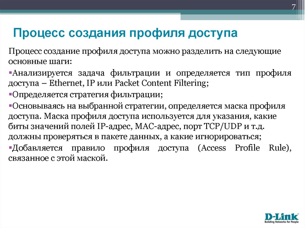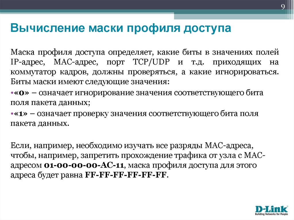 доступа. Маска профиля доступа используется для указания, какие