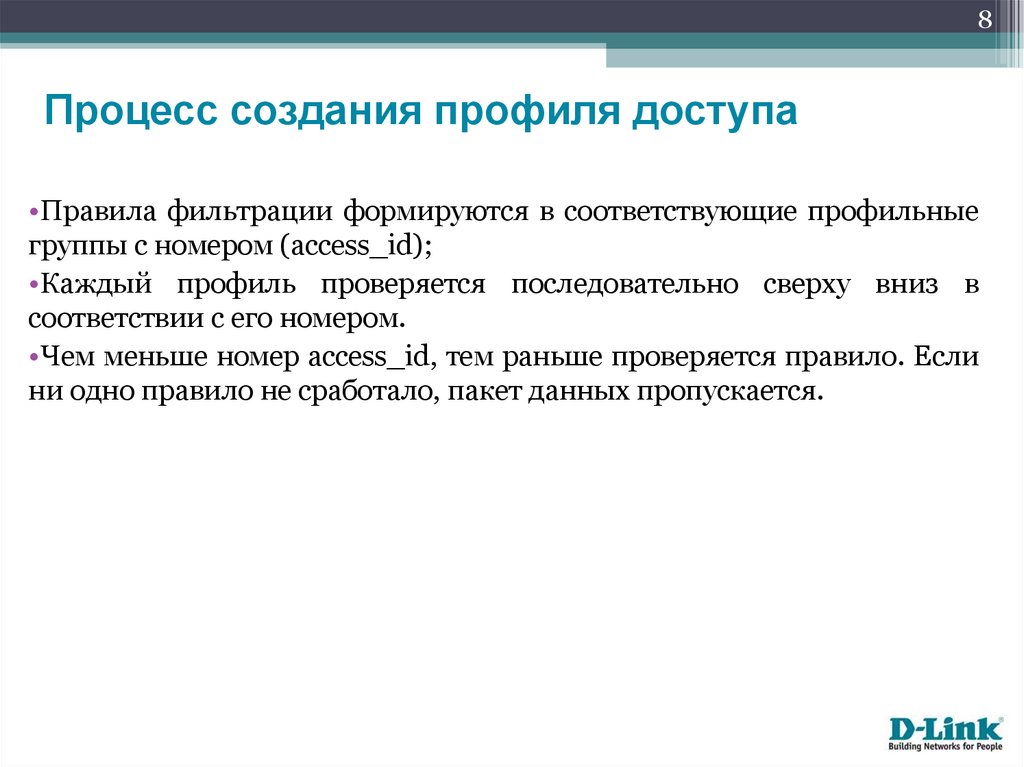 •Чем меньше номер access_id, тем раньше проверяется правило. Если