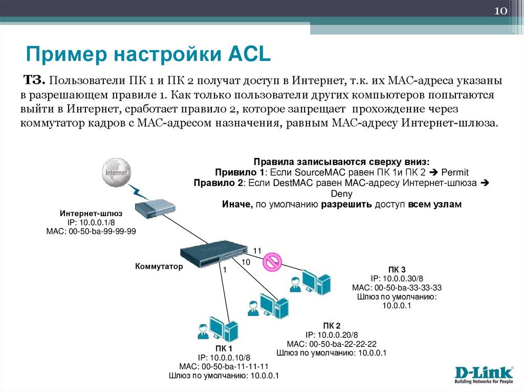 10Пример настройки ACL