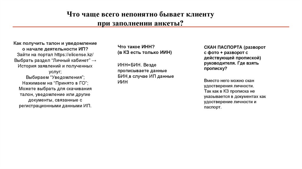 Что чаще всего непонятно бывает клиентупри заполнении анкеты?