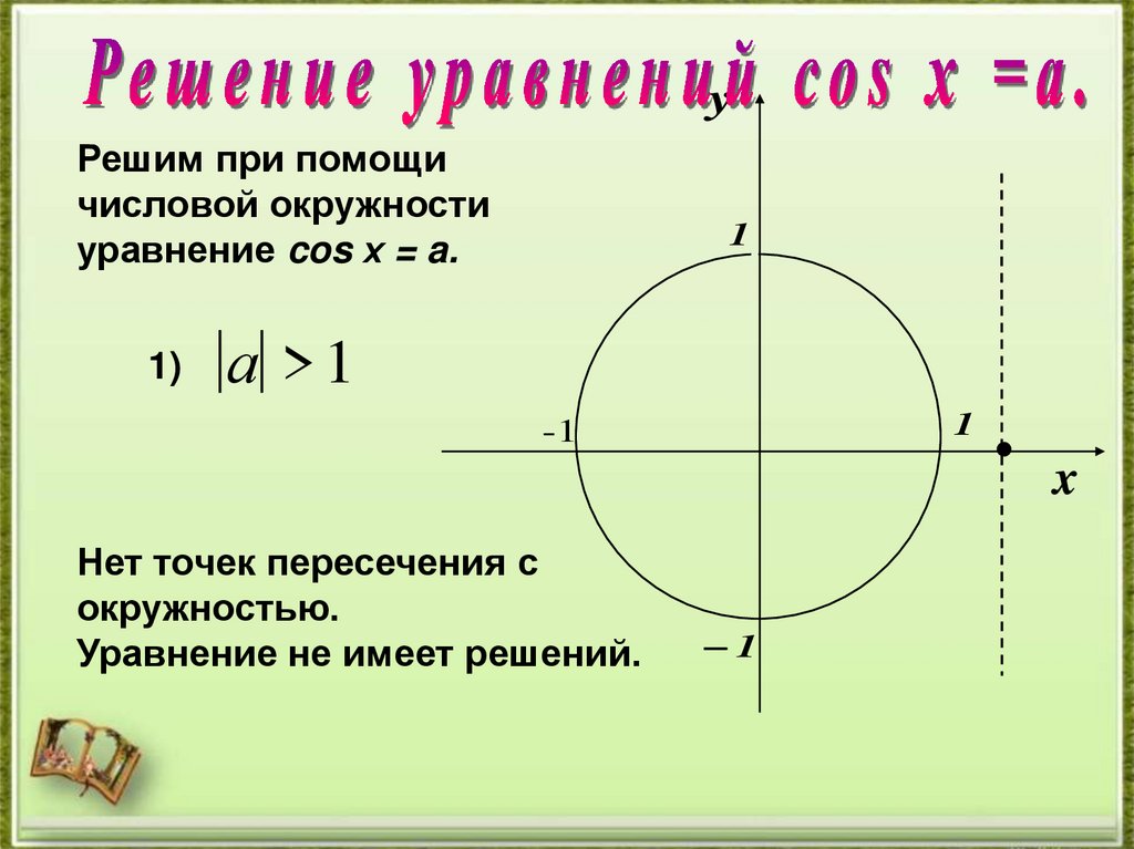 д) при а > 1 и a < -1 уравнение не имеет корней.