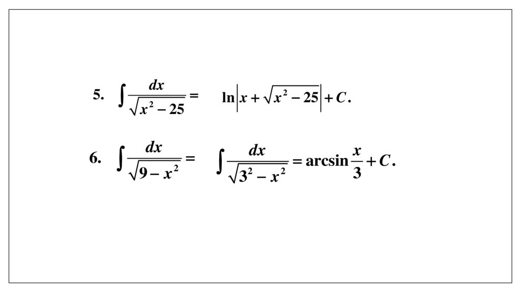 P ( x )ln xdx, P ( x)arcsin xdx,Pn ( x)arccos xdx, Pn ( x)arctgxdx, P ( x)arcctgxdx.