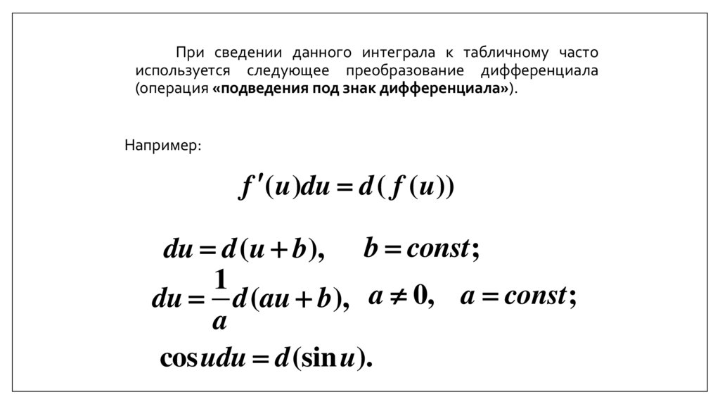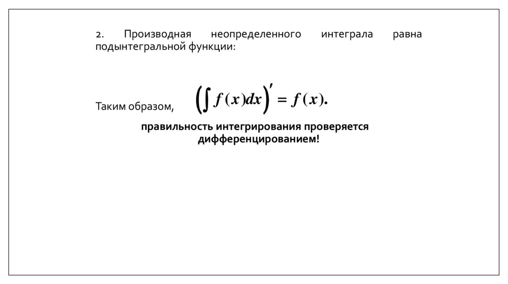 1. Дифференциал от неопределенного интеграла равенподынтегральному выражению: