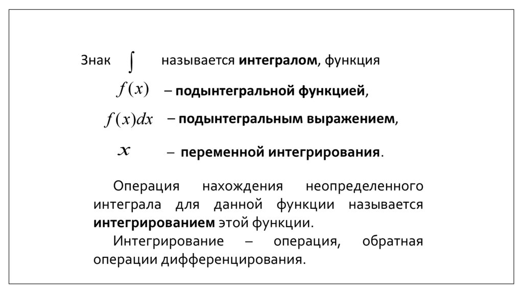 ОПР. Совокупность всех первообразныхF ( x ) C для данной функции f ( x )