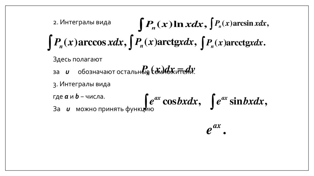 26. Некоторые типы интегралов, которые можно вычислять методом интегрирования по частям