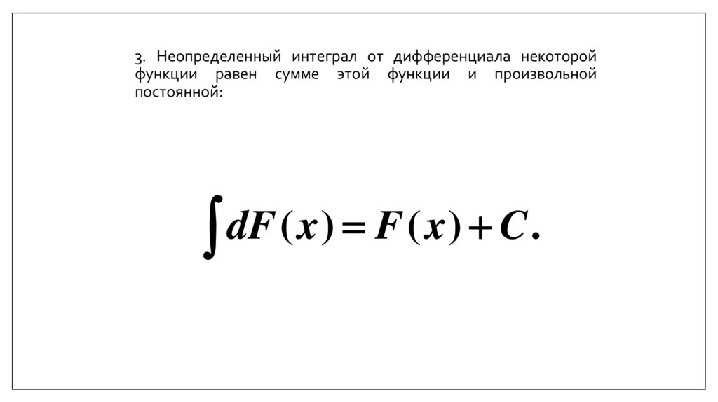 3. Неопределенный интеграл от дифференциала некоторойфункции равен сумме этой функции и произвольной