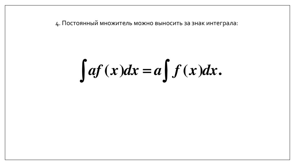 4. Постоянный множитель можно выносить за знак интеграла:af