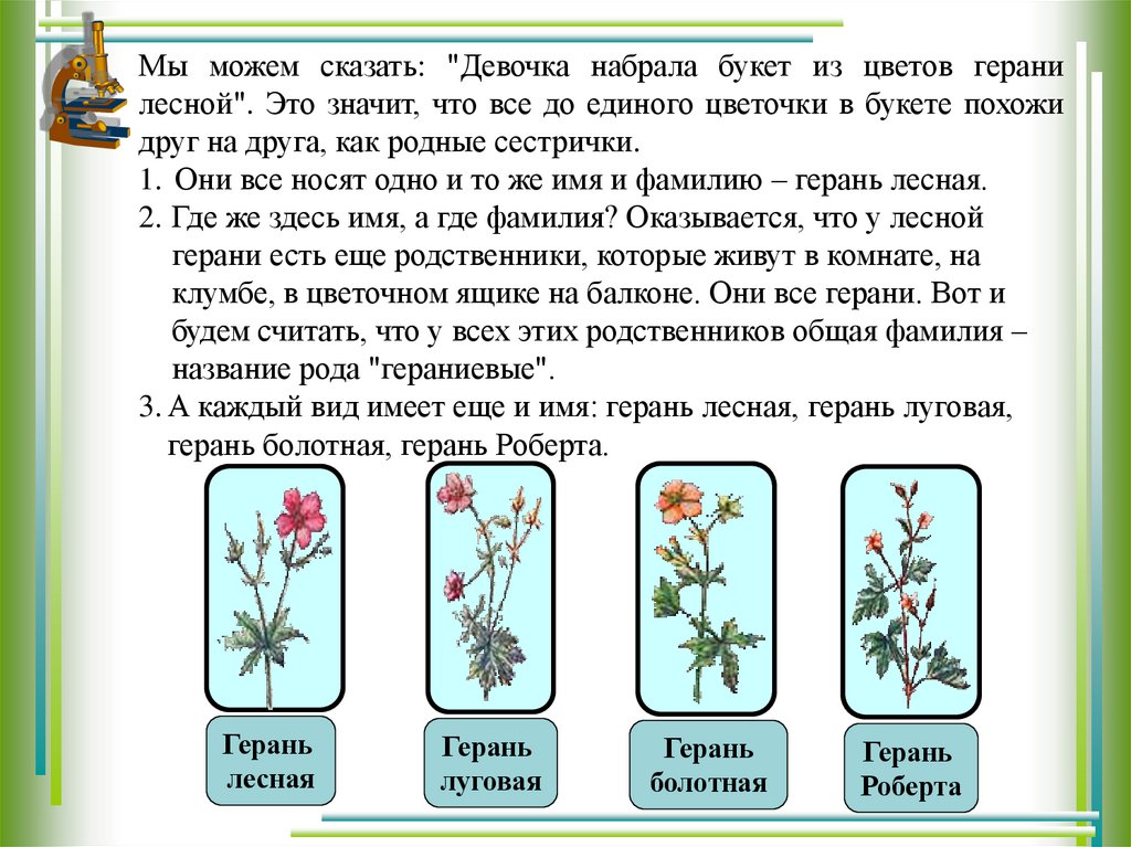3. А каждый вид имеет еще и имя: герань лесная, герань луговая,