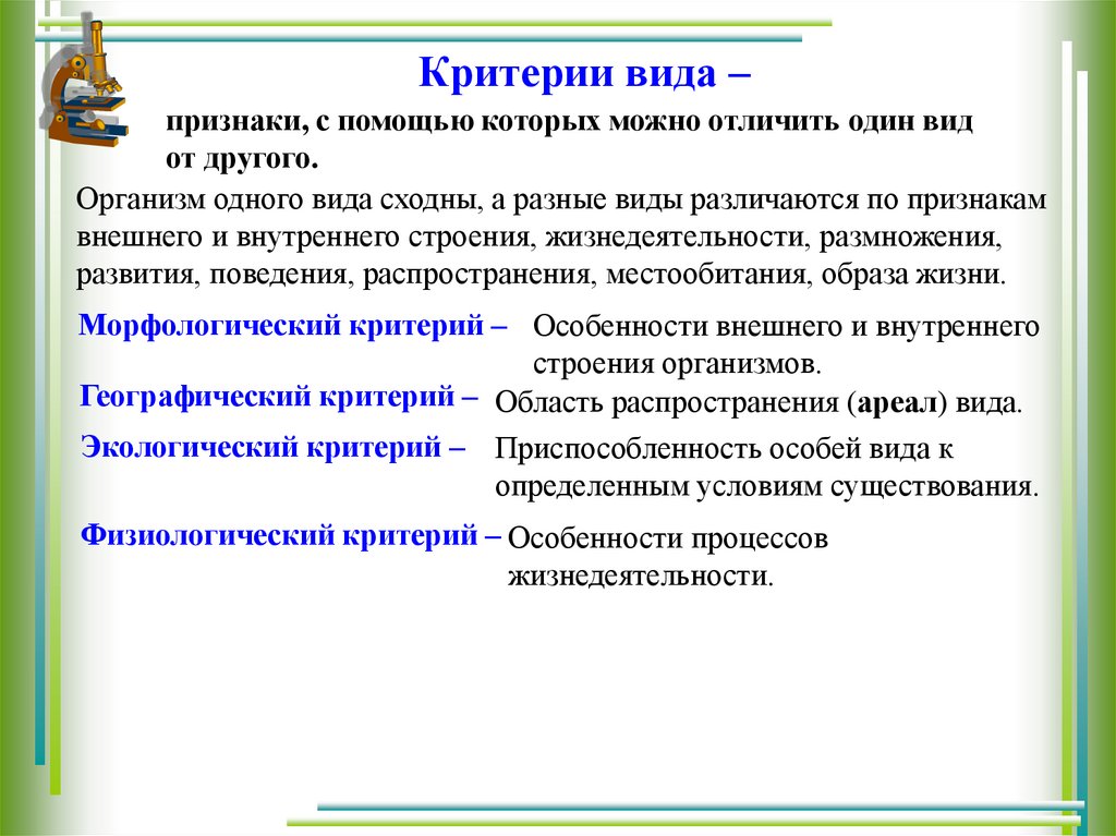 Критерии вида –признаки, с помощью которых можно отличить один вид
