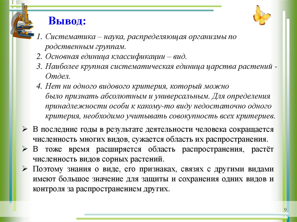 Вывод:1. Систематика – наука, распределяющая организмы по
