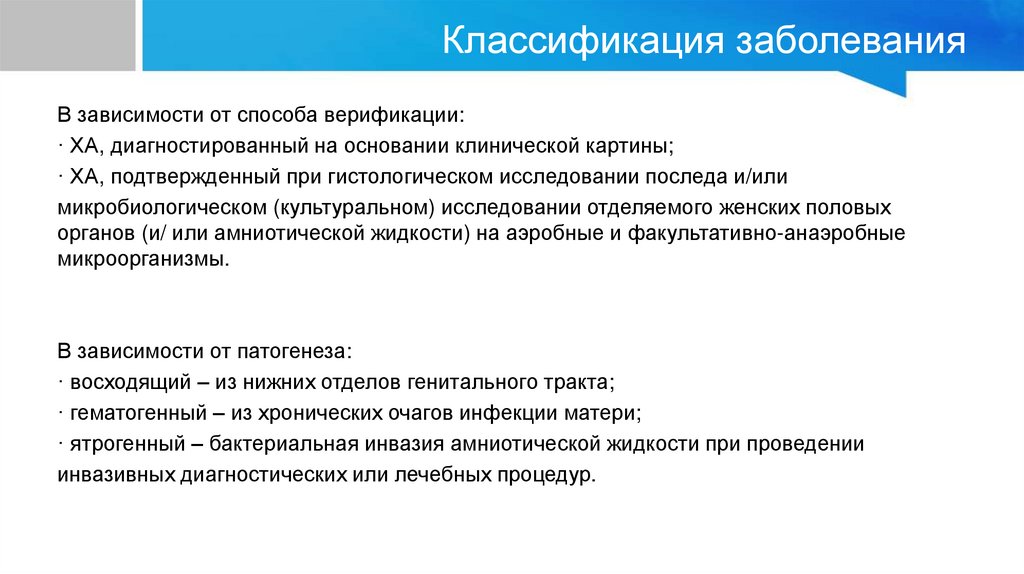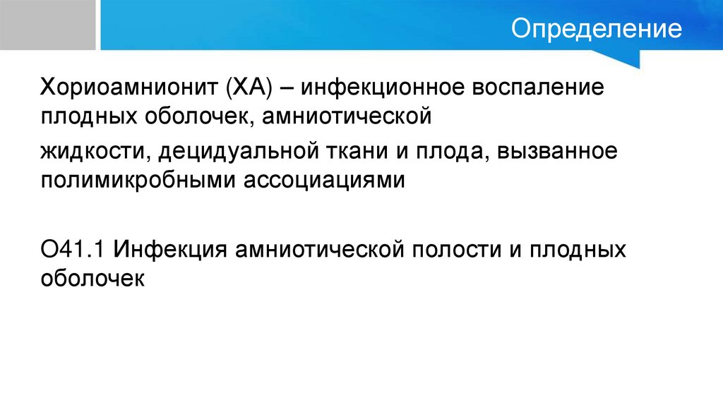 ОпределениеХориоамнионит (ХА) – инфекционное воспаление