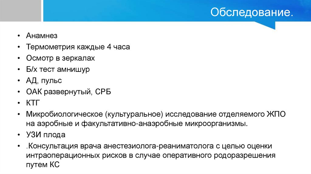 · ятрогенный – бактериальная инвазия амниотической жидкости при проведении