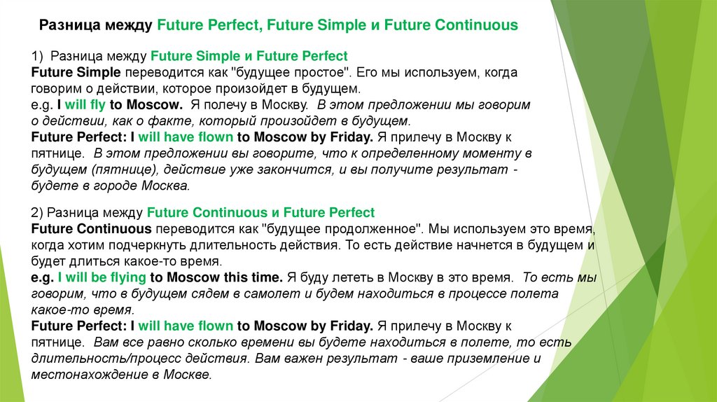I will be flying to Moscow tomorrow. Завтра я буду лететь в Москву.