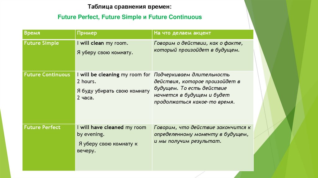 •Future (будущее): I will learn English. — Я буду изучать английский.