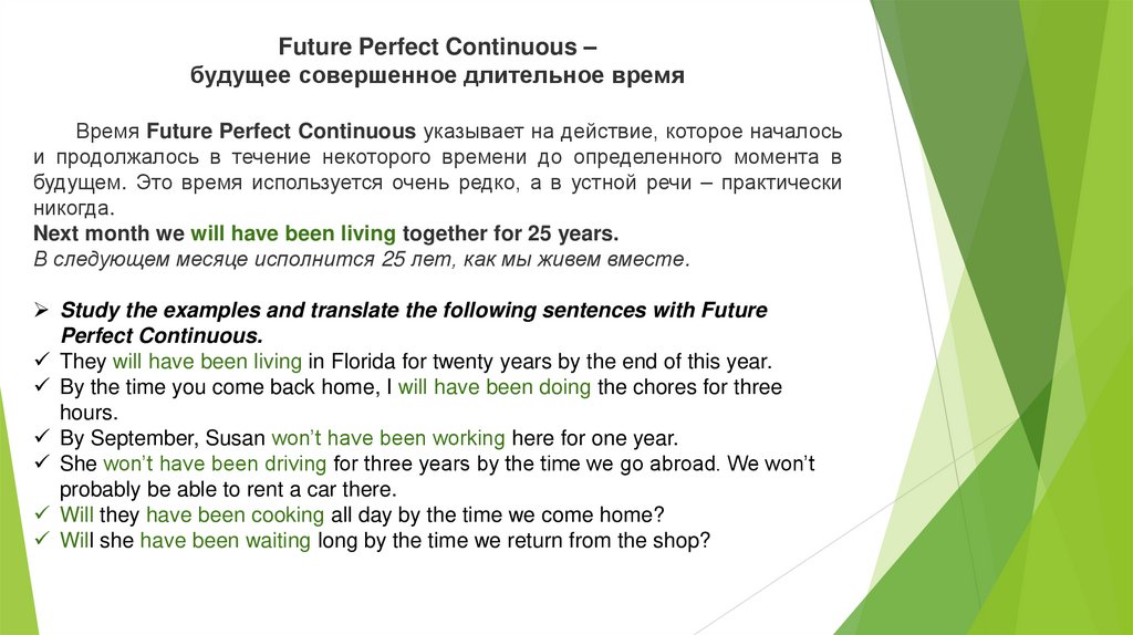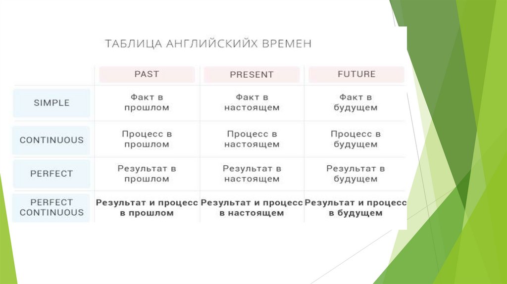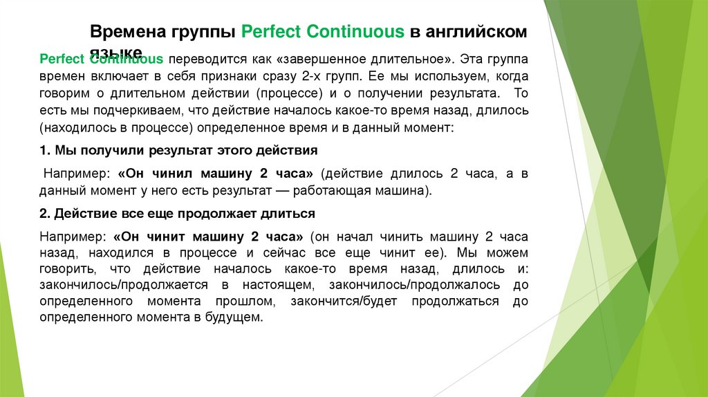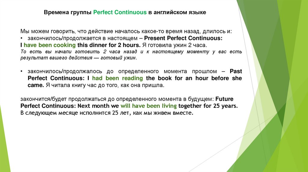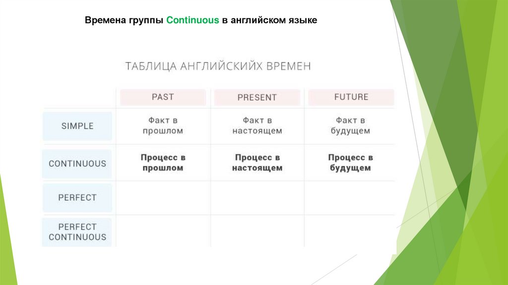 В отличие от группы Simple, здесь мы не имеем в виду факт, а говорим о процессе.