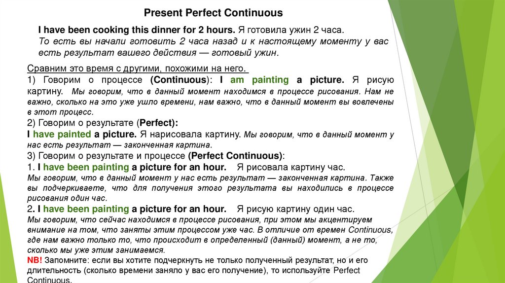 - Говорим о результате (Perfect): I have cooked dinner. Я приготовила ужин.