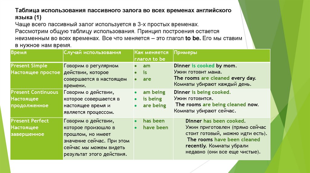 27. Таблица использования пассивного залога во всех временах английского языка (2)