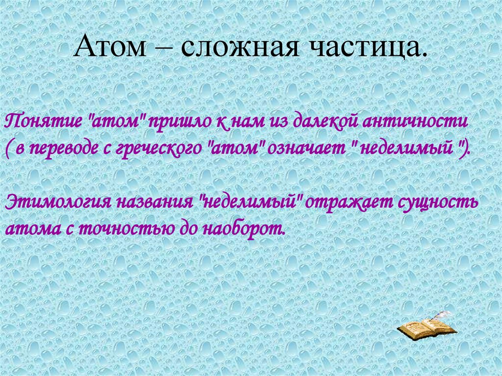 Атом – сложная частица.Понятие "атом" пришло к нам из далекой античности