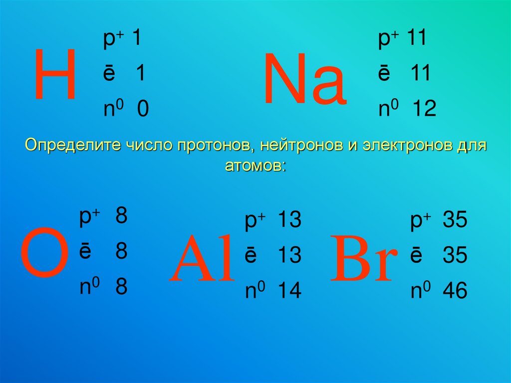 • Определите число электронов, протонов и нейтроновв атоме кислорода 8O17.