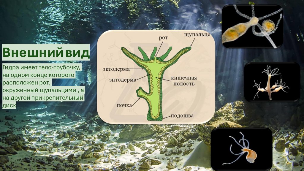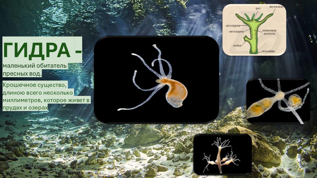 ГИДРА маленький обитательпресных вод.