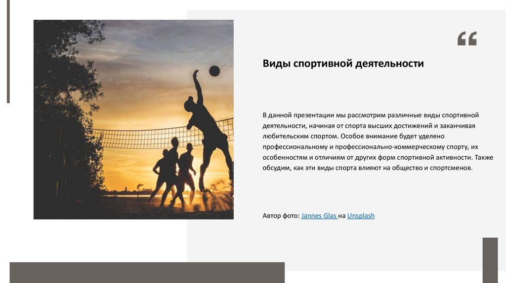 Виды спортивной деятельностиВ данной презентации мы рассмотрим различные виды спортивной