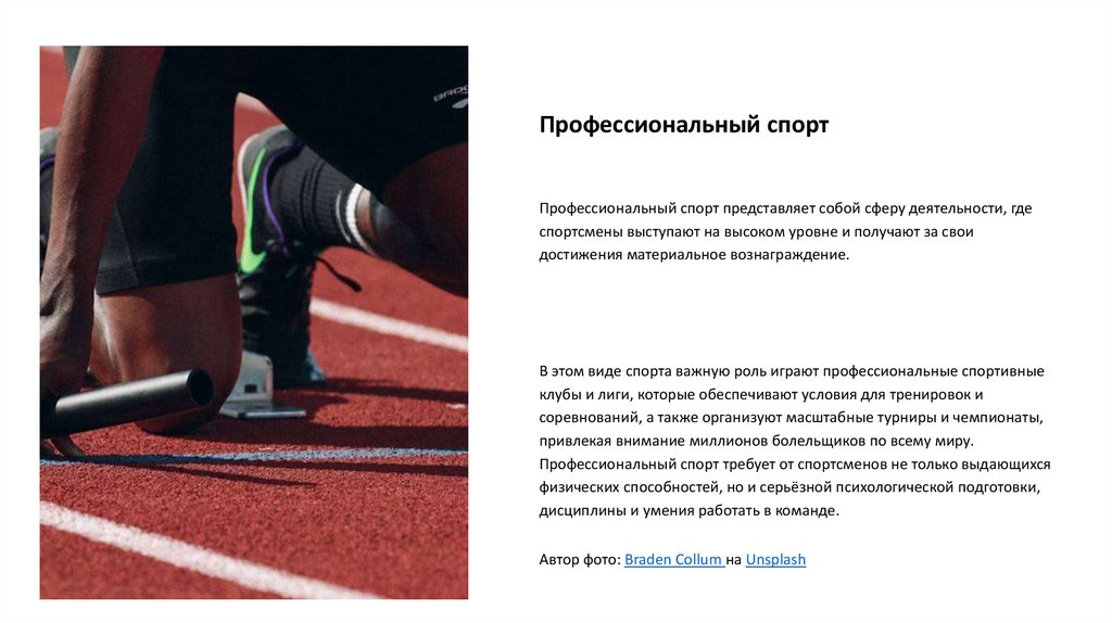 Профессиональный спортПрофессиональный спорт представляет собой сферу деятельности, где