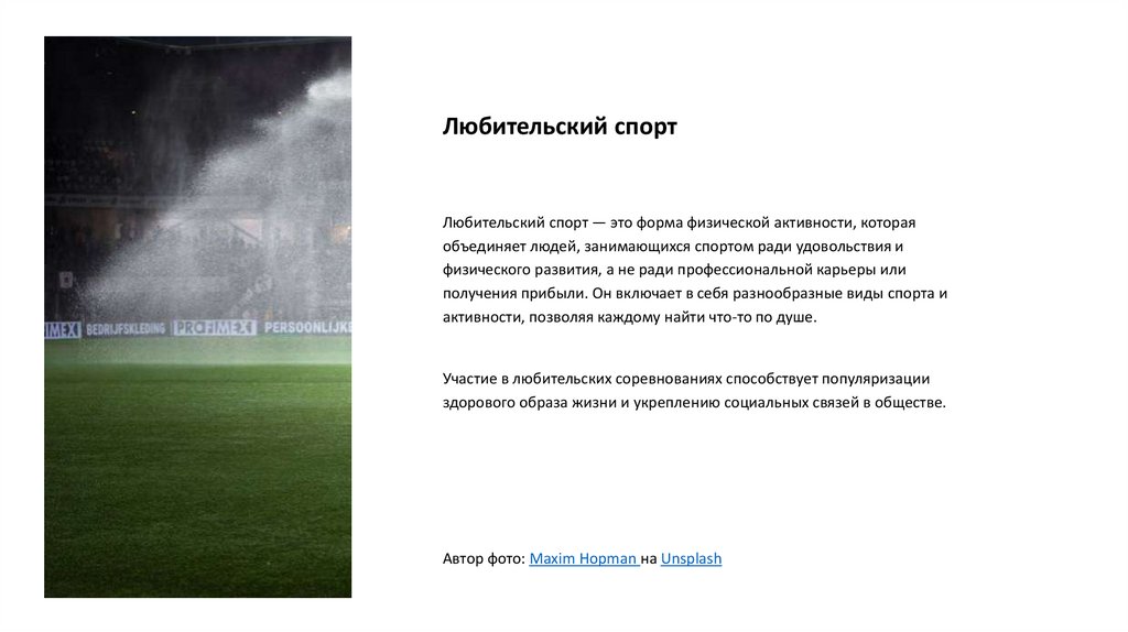 Любительский спортЛюбительский спорт — это форма физической активности, которая