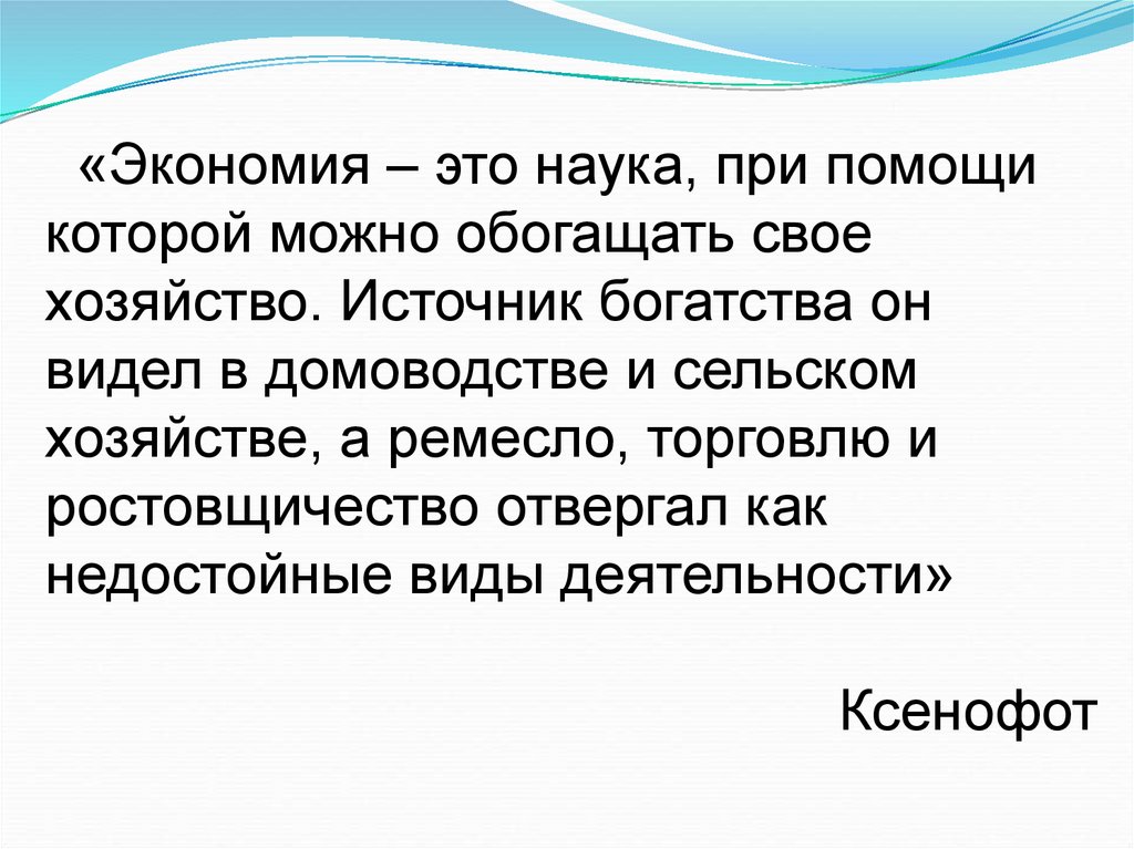 «Экономия – это наука, при помощикоторой можно обогащать свое
