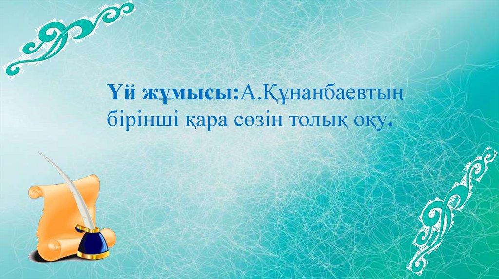 Үй жұмысы:А.Құнанбаевтыңбірінші қара сөзін толық оқу.