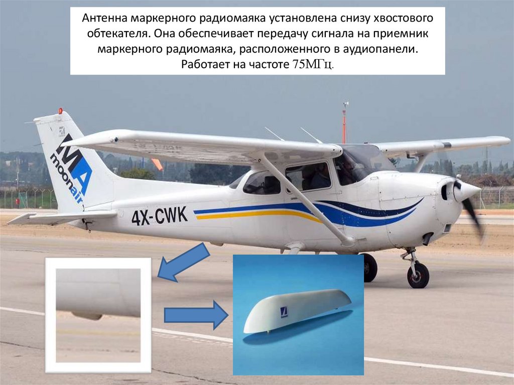 Антенна маркерного радиомаяка установлена снизу хвостовогообтекателя. Она обеспечивает передачу сигнала на приемник