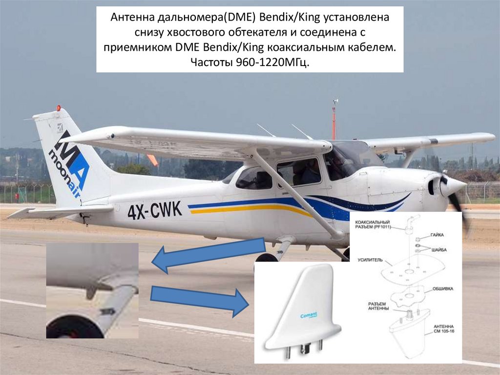 Антенна дальномера(DME) Bendix/King установленаснизу хвостового обтекателя и соединена с