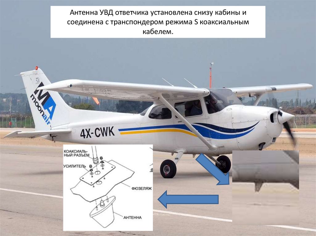 Антенна УВД ответчика установлена снизу кабины исоединена с транспондером режима S коаксиальным
