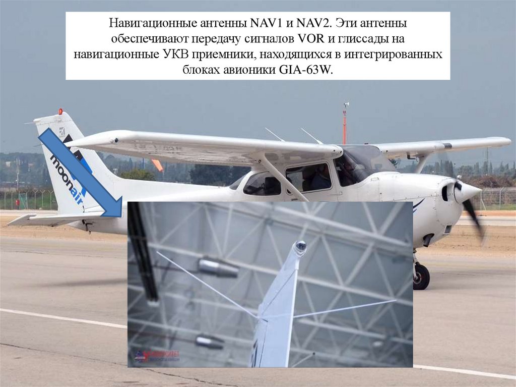 Навигационные антенны NAV1 и NAV2. Эти антенныобеспечивают передачу сигналов VOR и глиссады на