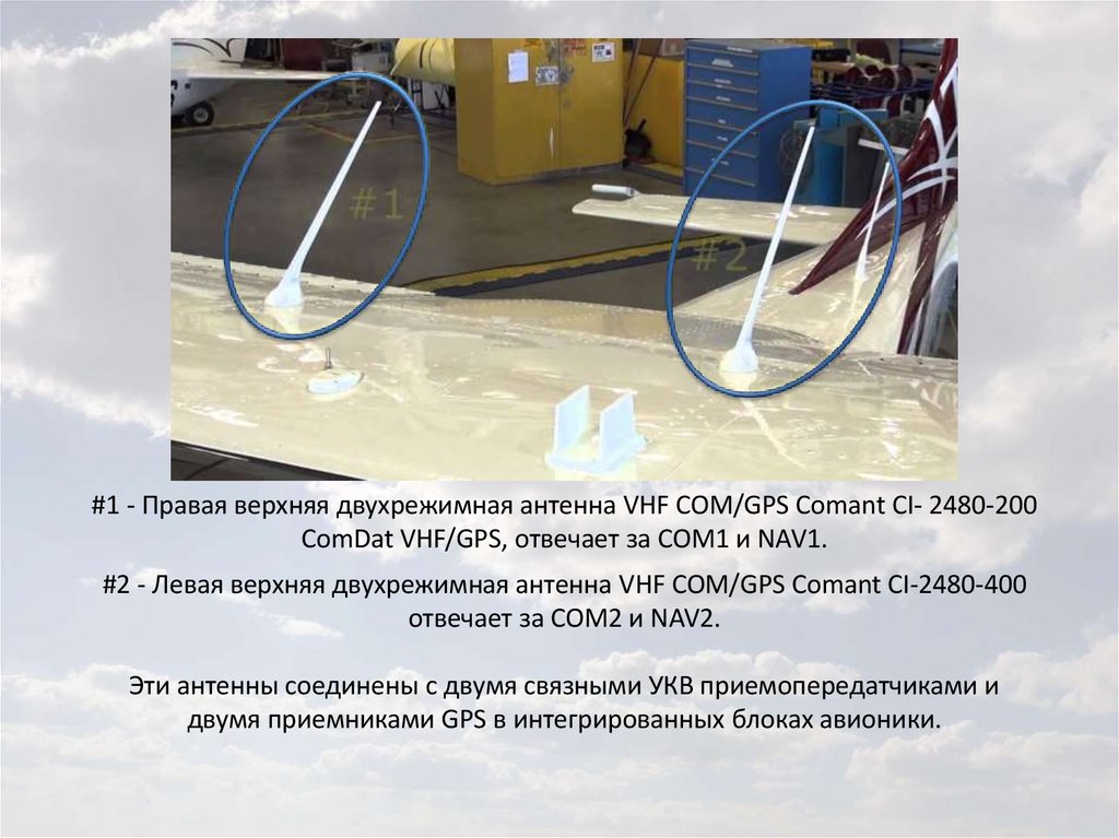 #1 - Правая верхняя двухрежимная антенна VHF COM/GPS Comant CI- 2480-200ComDat VHF/GPS, отвечает за COM1 и NAV1.