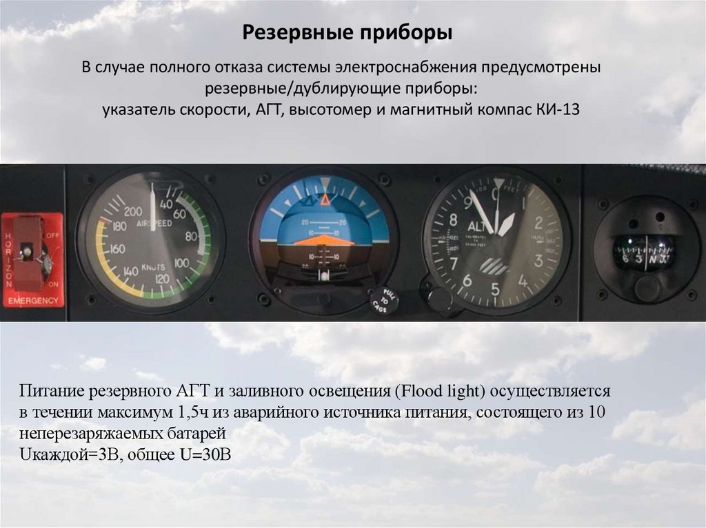 Резервные приборыВ случае полного отказа системы электроснабжения предусмотрены