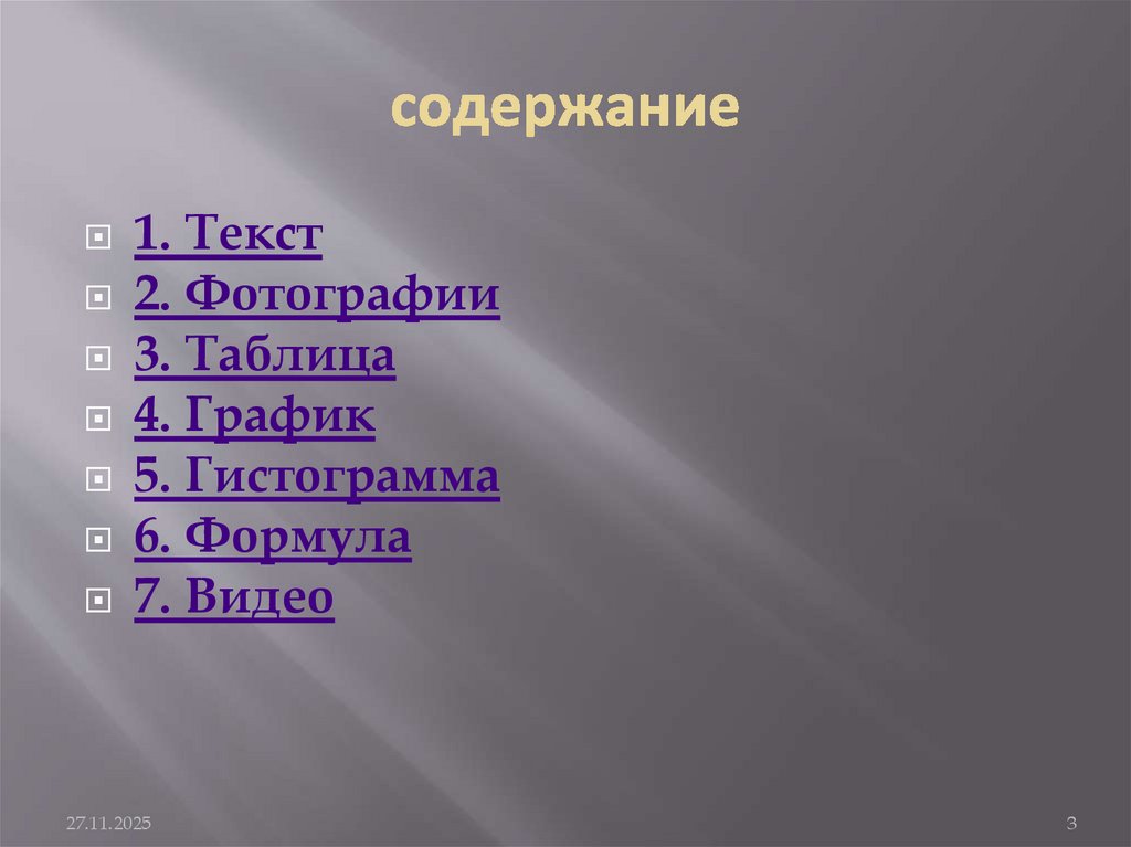 3. таблицу (например, Ваши оценки или возраст Ваш и родных),