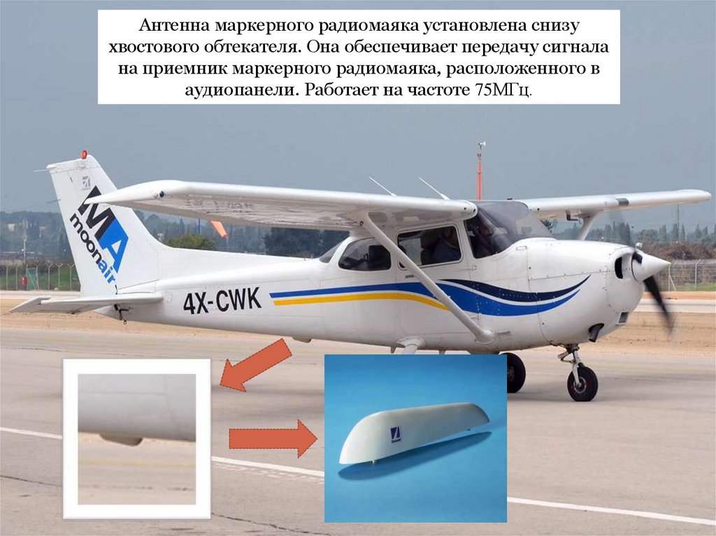 Антенна маркерного радиомаяка установлена снизухвостового обтекателя. Она обеспечивает передачу сигнала