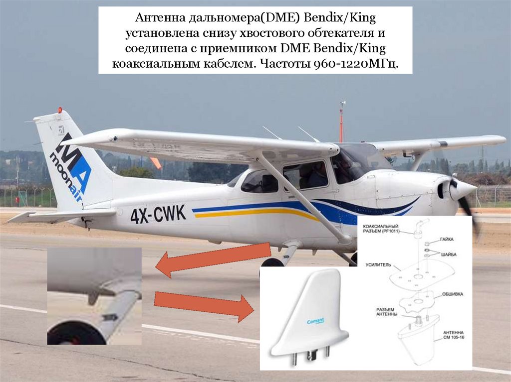 Антенна дальномера(DME) Bendix/Kingустановлена снизу хвостового обтекателя и