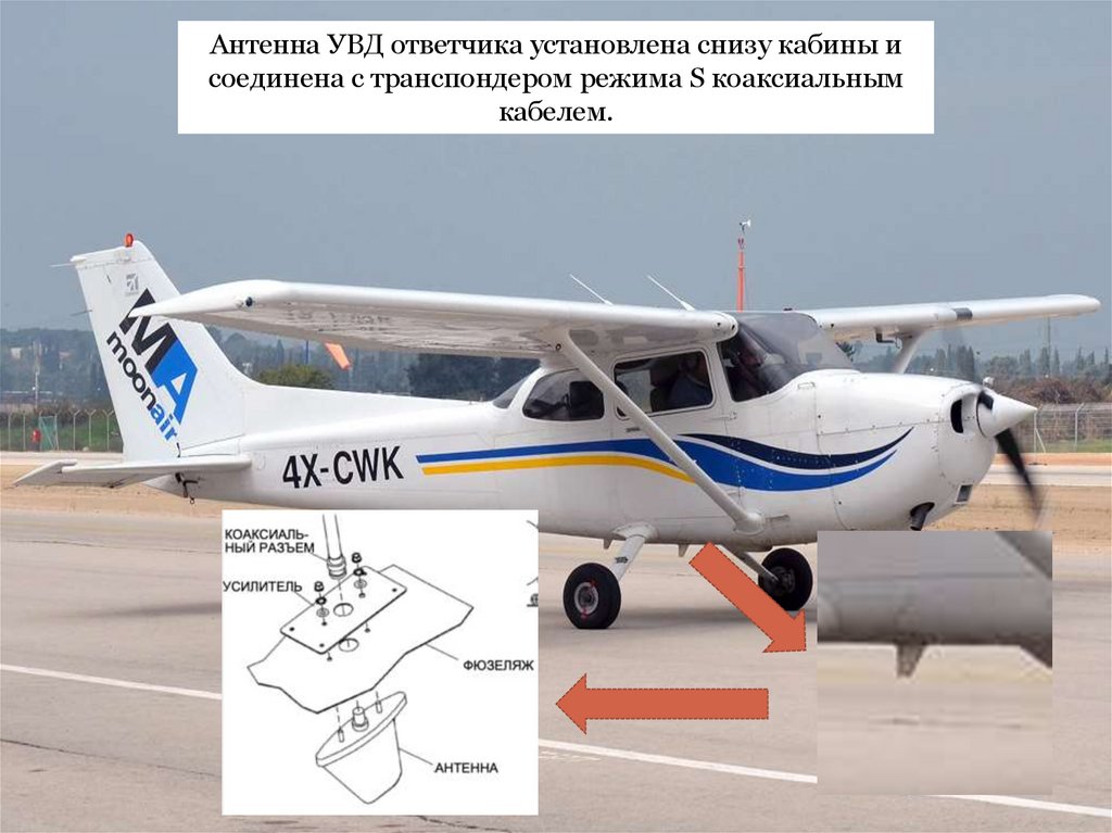 Антенна УВД ответчика установлена снизу кабины исоединена с транспондером режима S коаксиальным