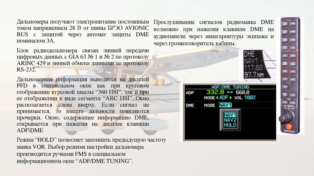 Дальномеры получают электропитание постояннымтоком напряжением 28 В от шины БРЭО AVIONIC