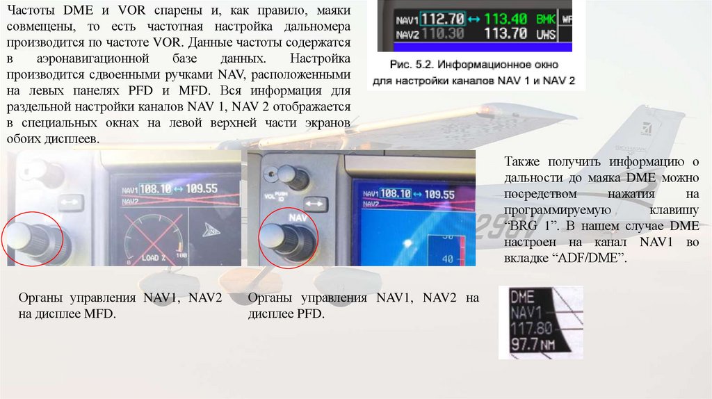 Частоты DME и VOR спарены и, как правило, маякисовмещены, то есть частотная настройка дальномера