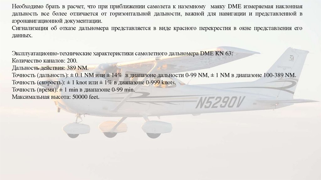 Необходимо брать в расчет, что при приближении самолета к наземному маяку DME измеряемая наклоннаядальность все более отличается от горизонтальной дальности, важной для навигации и представленной в
