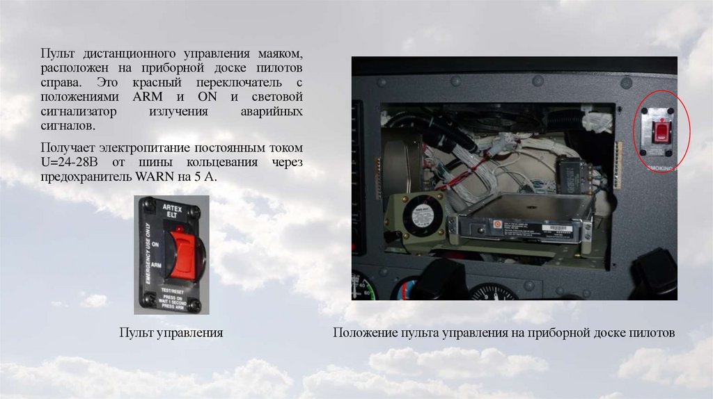 Пульт дистанционного управления маяком,расположен на приборной доске пилотов