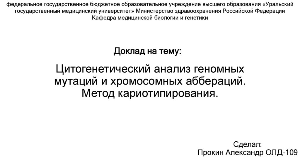 1. Цитогенетический анализ геномных мутаций и хромосомных аббераций. Метод кариотипирования.