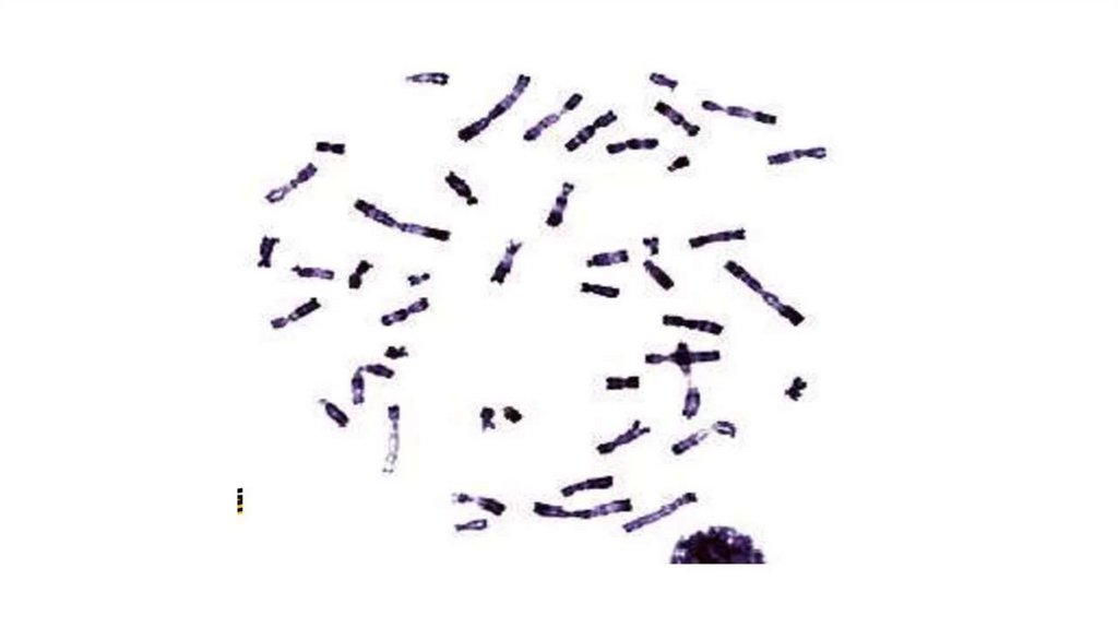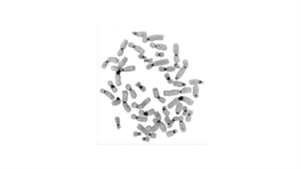 • Использование такого метода окрашивания позволяет провести подсчет хромосом иих групповую принадлежность, проанализировать повреждения хромосом,