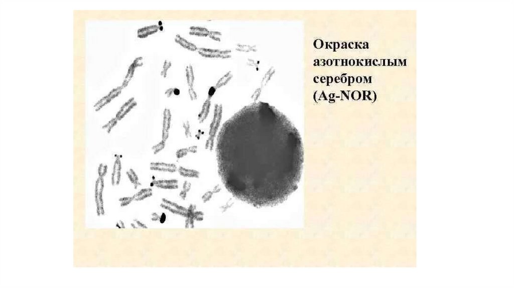 серебра. Известно, что районы ядрышковых организаторов содержат гены рибосомальной
